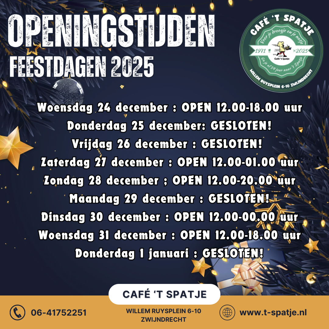 WIJ ZIJN 6 DAGEN IN DE WEEK OPEN VANAF 12.00 UUR!