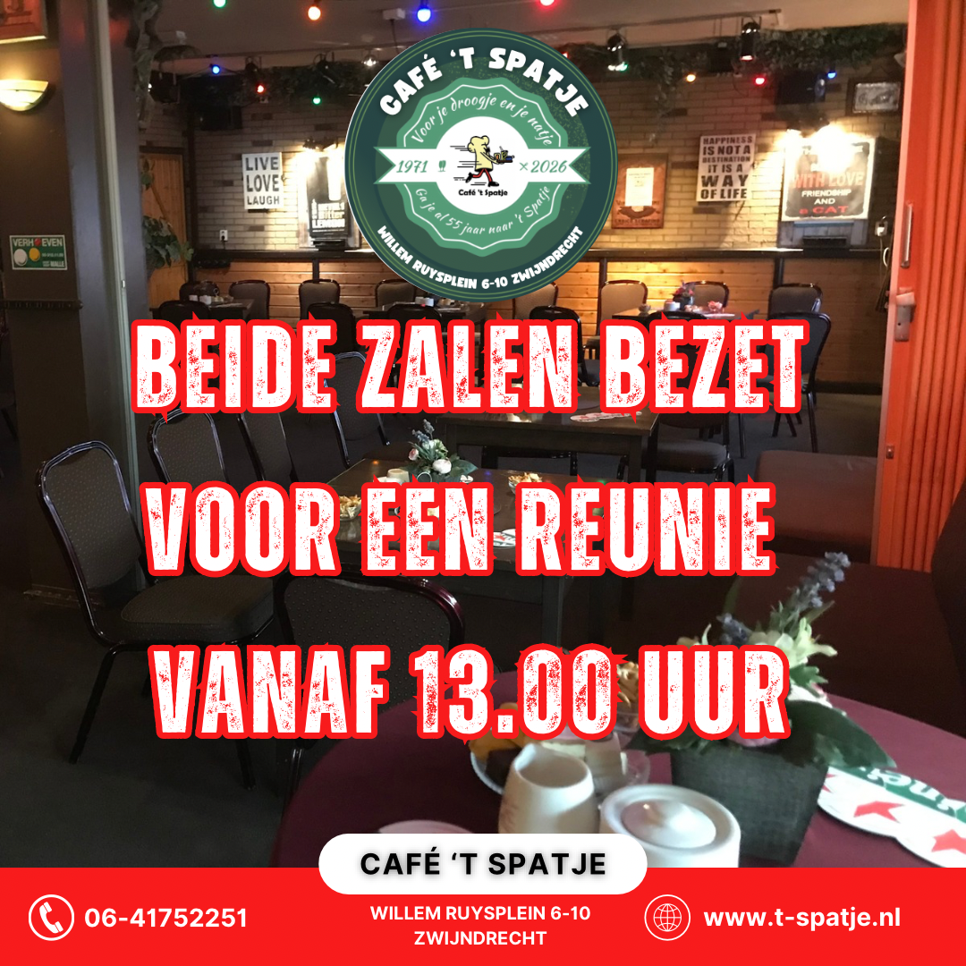Onze beide zalen zijn vanaf 13.00 uur bezet voor een reünie!