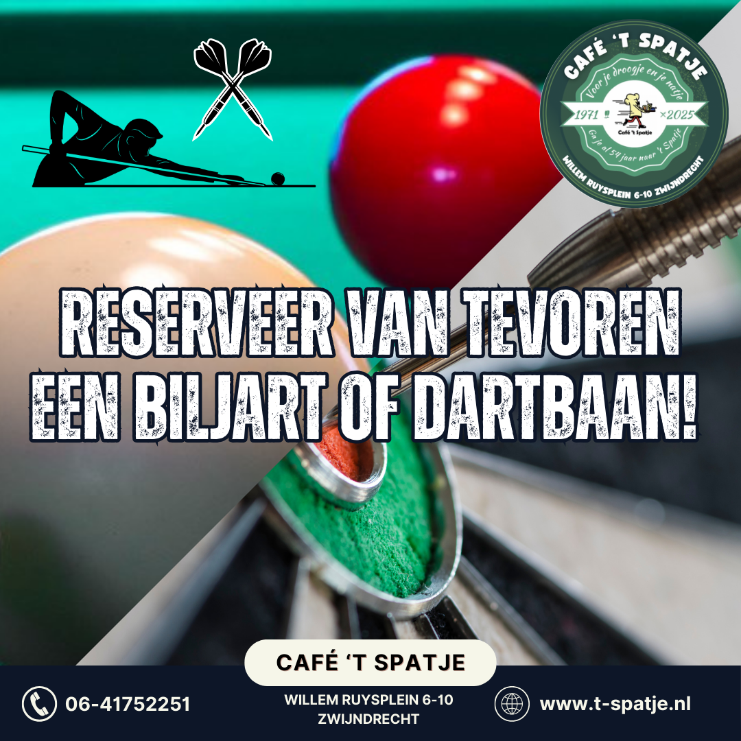 Wilt u aan het eind van dit jaar nog een potje biljarten of darten? Reserveer dan van tevoren!